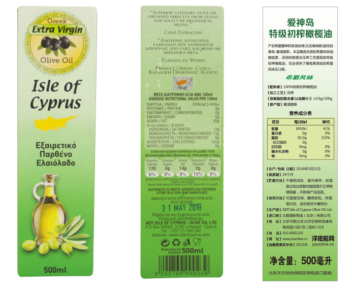 愛神島特級初榨橄欖油標簽(樣例)