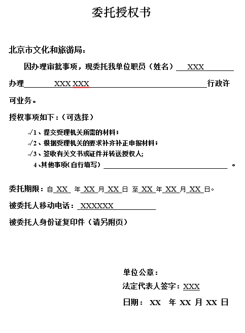 藝術品批文辦理委托授權書(模板)