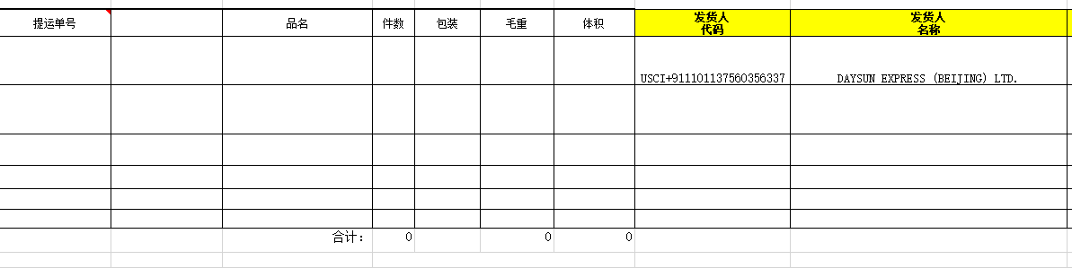 《出口預(yù)配艙單明細(xì)表》(模板)