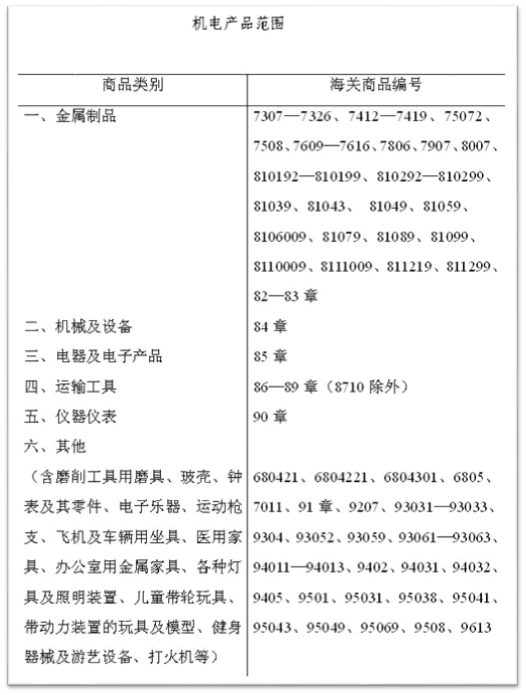 4)機電產(chǎn)品范圍和對應(yīng)的海關(guān)商品編號: