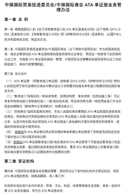 中國國際貿(mào)易促進委員會/中國國際商會ATA單證冊業(yè)務(wù)管理辦法