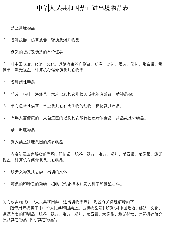 中華人民共和國禁止進出境物品表