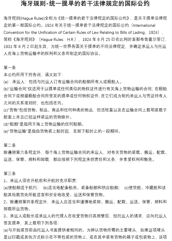 海牙規(guī)則-統(tǒng)一提單的若干法律規(guī)定的國際公約