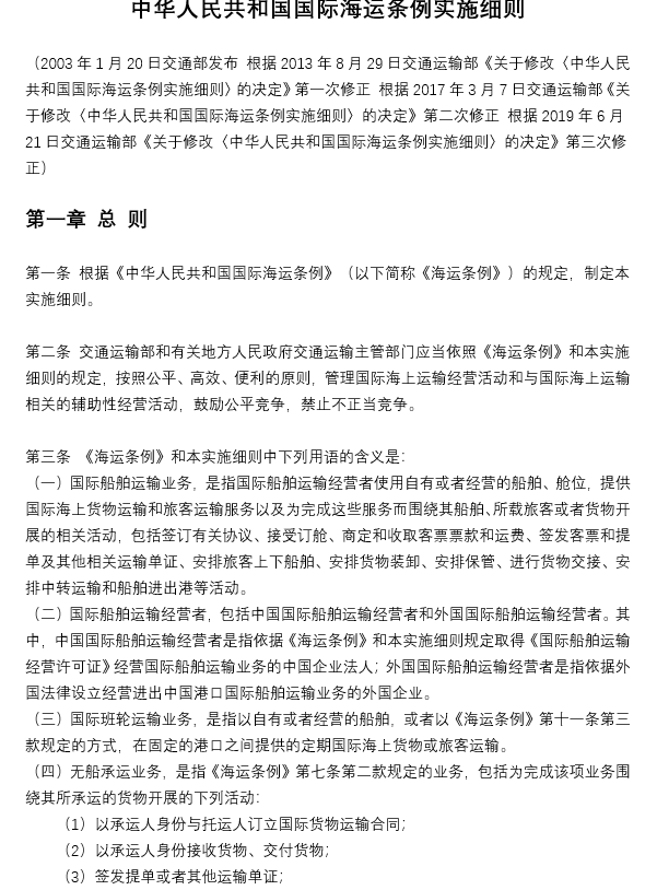 中華人民共和國國際海運(yùn)條例實施細(xì)則